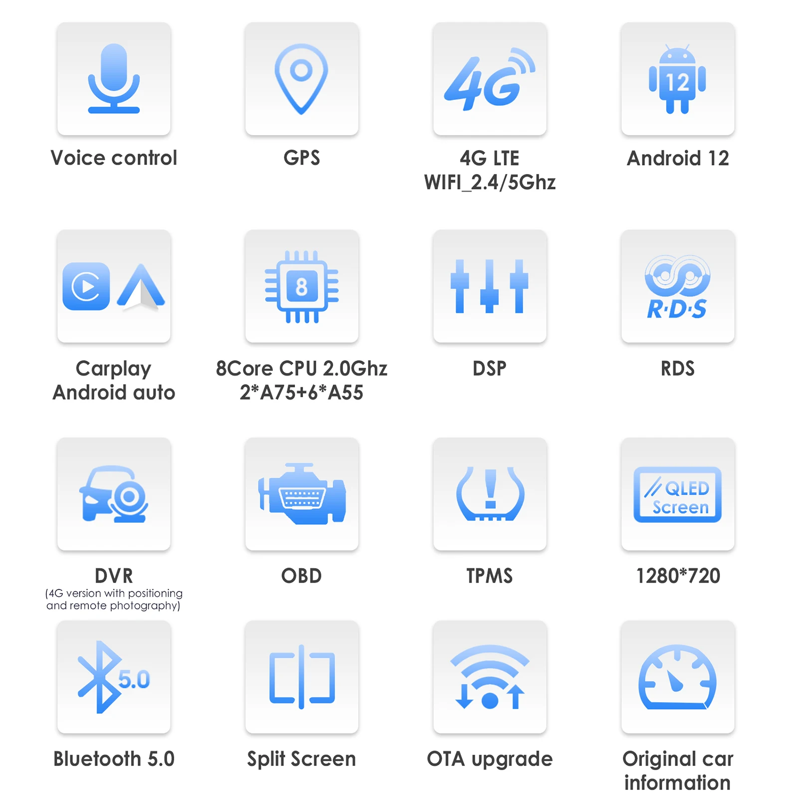 TPMS Function( Needs to order separately) : Tire Pressure Monitoring: Real-time displays 4 tires pressure and temperature,Tire Pressure Monitoring system will be warning when the tire temperature is high, pressure is low.